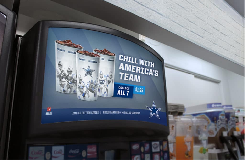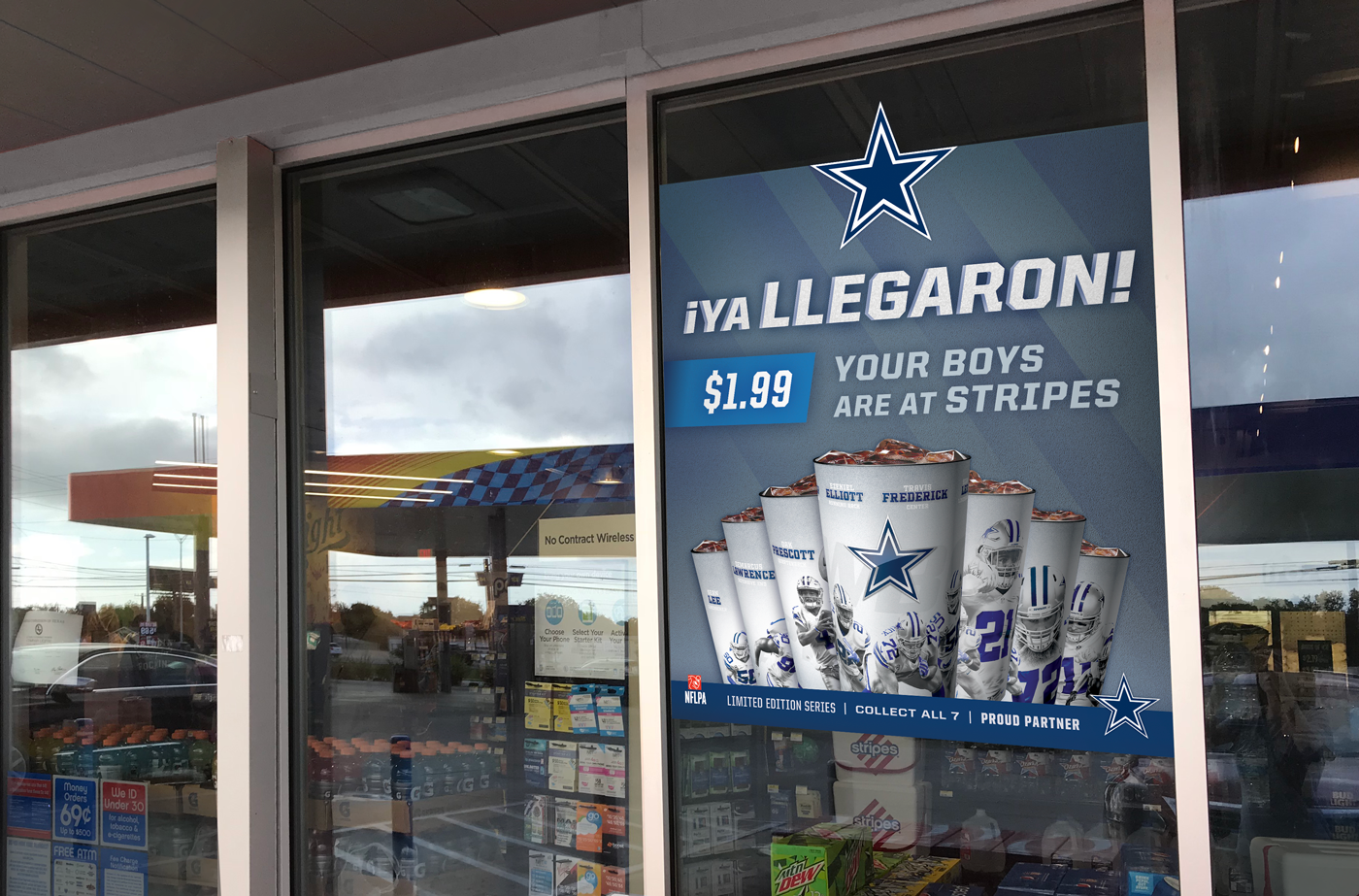 In Texas, football fans are ready to cheer on America’s team. As part of the 7-Eleven family, Stripes stores release a special edition series of (7) Dallas Cowboys souvenir cups. Stripes customers can score these collectible cups in participating stores as they were released each week during the football season.